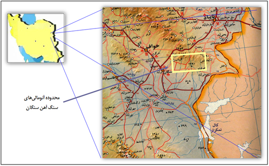مجموعه کانسار های سنگ آهن سنگان در فاصله حدود 300 کیلومتری جنوب شرقی مشهد، 68 کیلومتری جنوب غربی تایباد، 40 کیلومتری جنوب شرقی خواف و 18 کیلومتری شمال شرقی سنگان در استان خراسان رضوی و نزدیک مرز افغانستان قرار دارد. این محدوده در برگیرنده مجموعه کانساری به شکل مستطیلی به طول تقریبی 22 کیلومتر و عرض 10 کیلومتر میباشد. حداکثر ارتفاع منطقه 1812 متر میباشد. این منطقه دارای آب و هوای کویری خشک و با متوسط بارندگی سالیانه 150 تا 250میلی متر در سال همراه با وزش بادهای تقریبا دائمی است که در 6 ماهه ی اول سال سرعت آن به بیش از 50 کیلومتر در ساعت میرسد. حداکثر درجه ی حرارت 35 سانتی گراد و حداقل آن 11- درجه ی سانتی گراد ثبت شده است.